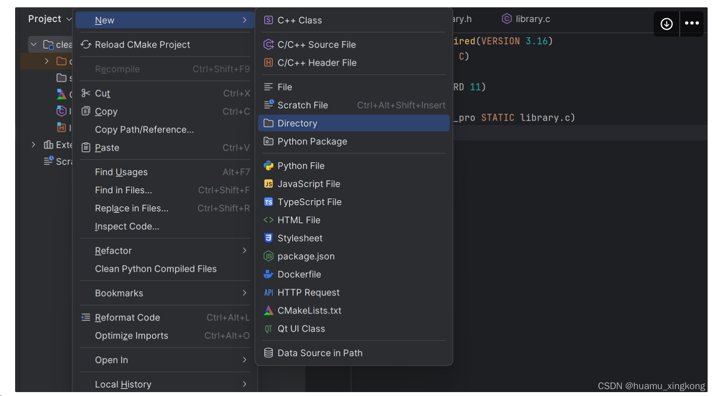 4.右键新建三个目录,分别用来存放src(程序文件)inc(头文件)build(可执行文件)