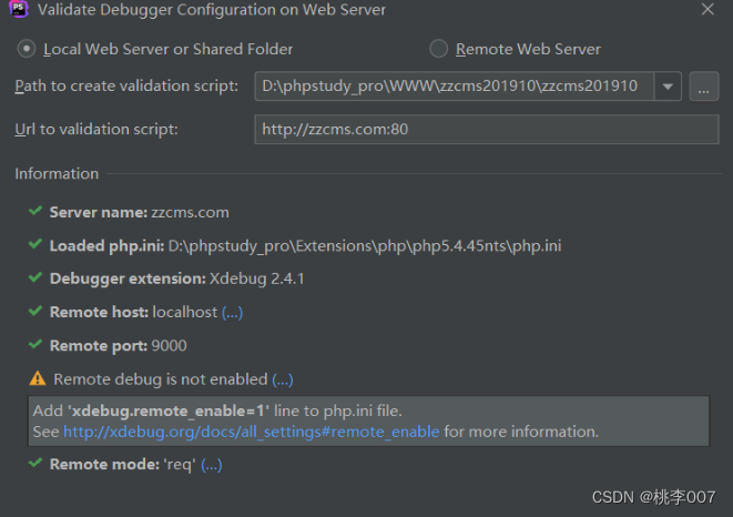 找到对应的php.ini文件,将其xdebug.romote_enable=Off修改为xdebug.romote_enable=On,