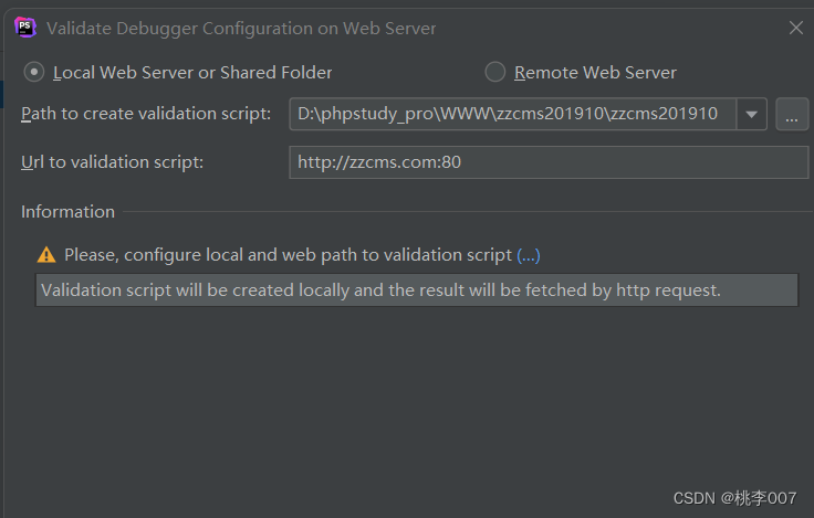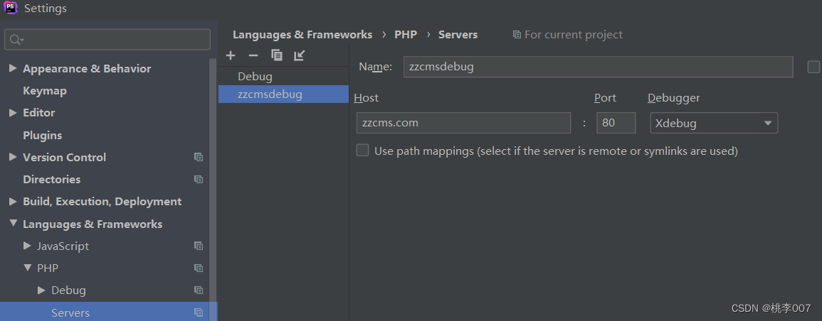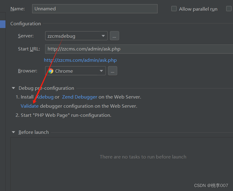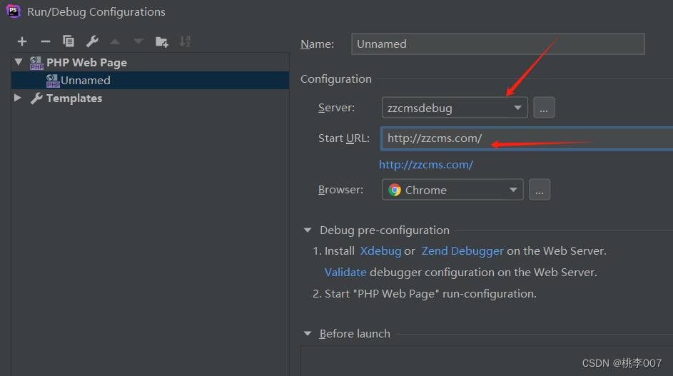 Starturl选择网站根目录,server选择之前新建的zzcmsdebug,apply。