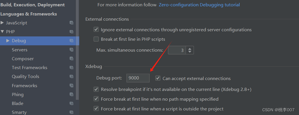 在Debug一栏修改端口为9000,apply。