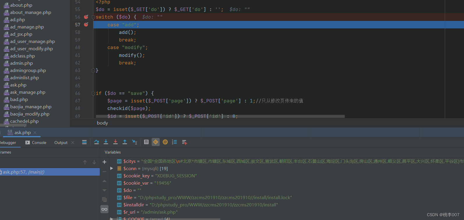 这里以zzcms/admin/ask.php为例子